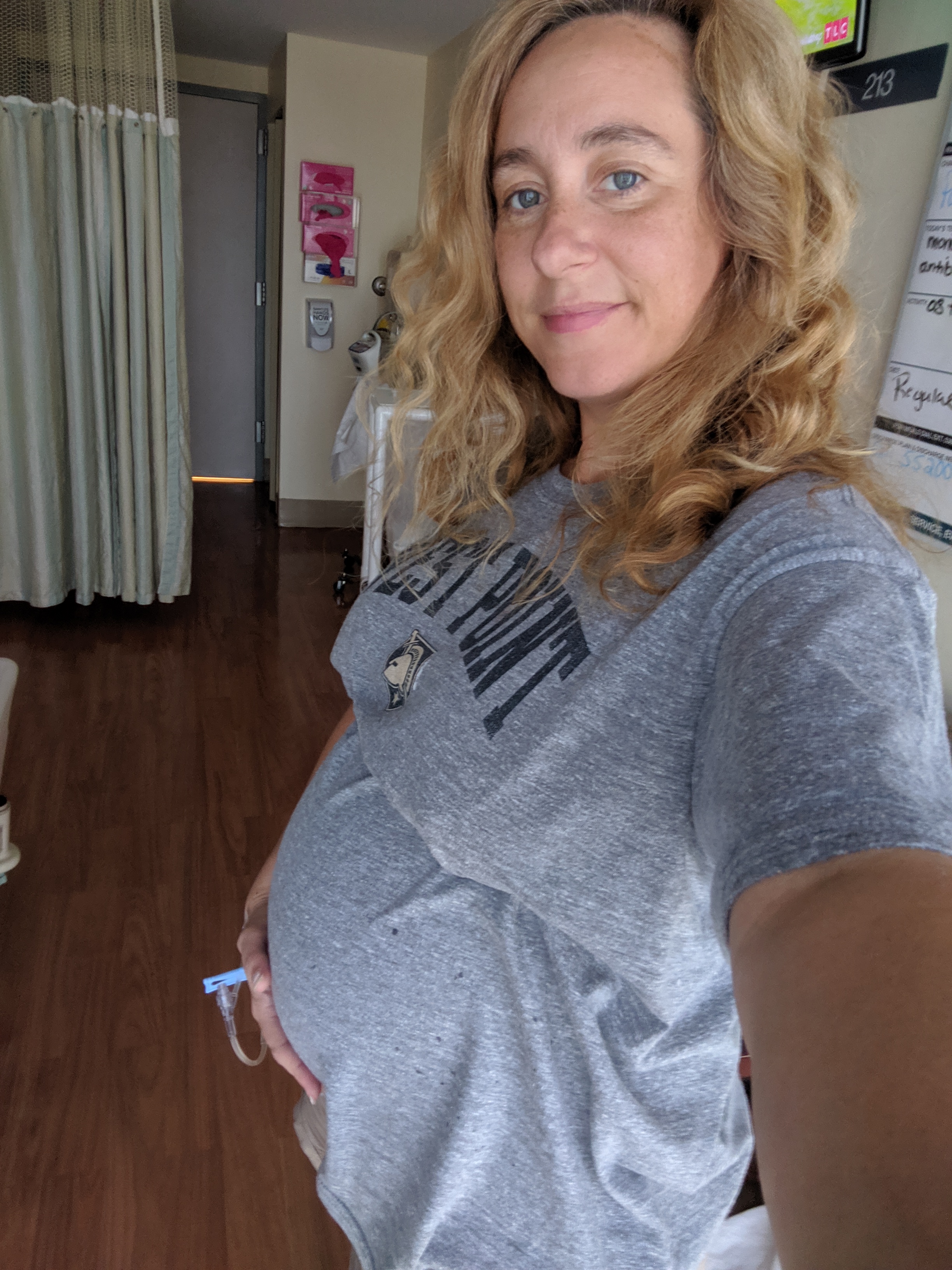 The midwife recommended I head to the ER about 25 minutes away as they have a Level III NICU just in case we do need it. If I’d have gone to the closest hospital, they would have just transferred us there anyway. My SIL and nieces were at the house at this point for the photo’s so they drove the two of us to the hospital. I didn’t bring a bag or anything with me. It’s literally the only time in your life you’re hoping you did indeed pee yourself. Once we got to the ER and I stepped out of the car to go inside I felt a gush down my legs. That pretty much confirmed my fears: my water broke at 32 weeks and 5 days at 6:30pm.